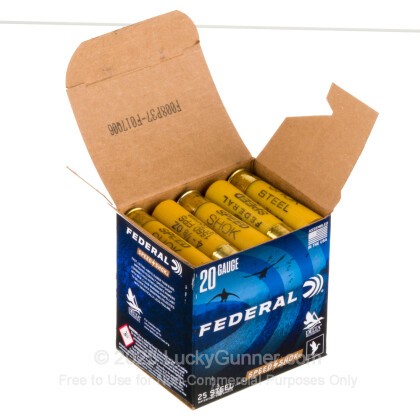 This 20 Gauge shotshell is longer than usual at 3”, so it treats the hunter to a full 7/8 ounce helping of shot. #4 steel shot is on the smaller end of the size spectrum, which is why many hunters would prefer to use it exclusively where decoys are involved. Federal’s steel shot is nontoxic, of course, but their pellets are also consistently sized and spherical to promote tighter patterns.