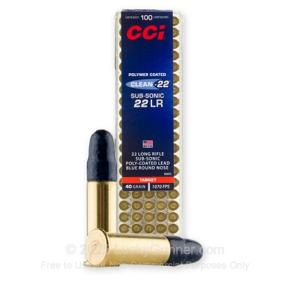 22 LR - 40 Grain Poly-Coated LRN - CCI Clean-22 - 100 Rounds