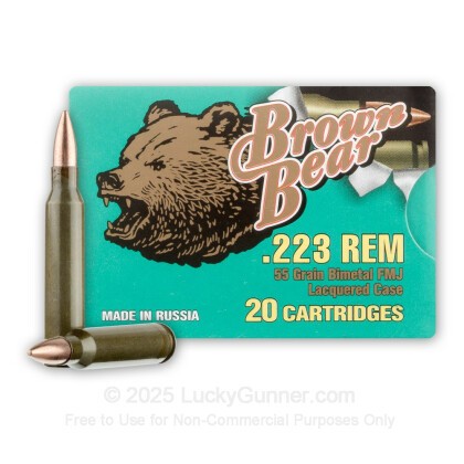 223 Rem - 55 Grain FMJ - Brown Bear (Lacquered) - 500 Rounds