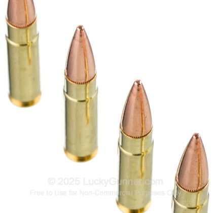 This cartridge’s 150 grain bullet is light enough to achieve a ripping fast 1,850 fps muzzle velocity. If you’re looking for subsonic 300 Blk, then brother, this ain’t it! The bullet itself is a plain Jane FMJ, with a solid lead core and solid copper jacket that won’t attract a magnet. It’s plenty accurate, though, as this ammo is assembled with the aid of match grade technology.