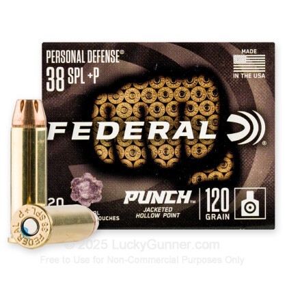You’re looking for proper 38 Special +P ammunition for personal protection, and you have just found it: Federal Premium Punch, which is made in Minnesota and designed to handle the kinds of threats civilians are commonly confronted by.