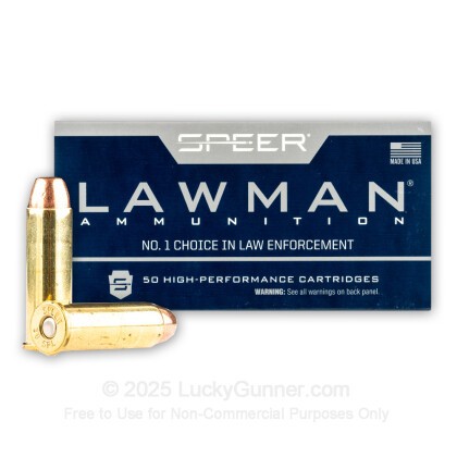 This .38 Special ammunition from Speer's Lawman series is an excellent practice load, particularly if you carry Speer Gold Dot ammunition. Each variant of Lawman range ammunition is designed to produce the same ballistics and recoil as its Gold Dot counterpart. This results in a more realistic training experience without the need to expend large amounts of costly hollow point ammo.