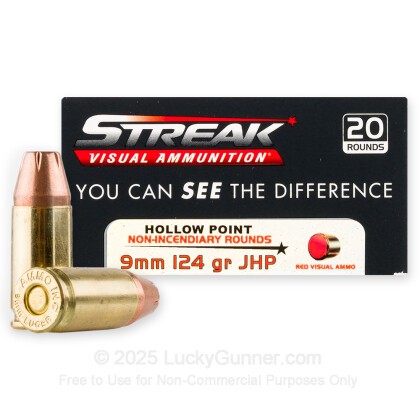 9mm - 124 Grain JHP Non-Incendiary Visual Tracer - Ammo Inc. Streak - 200 Rounds