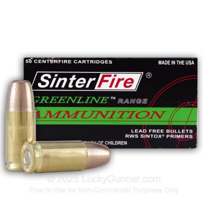 Sinterfire 9mm Greenline frangible ammunition utilizes a lead-free bullet which disintegrates into a fine powder upon impact with a hard surface. This makes for a much safer round for close quarters and steel plate training, while having the added benefit of being non-toxic and environmentally friendly!
