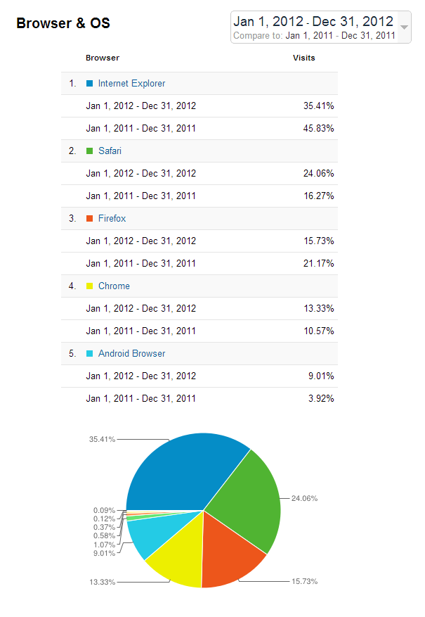 Not surprisingly, it was a tough year for Microsoft and Firefox and a win for Google and Apple.