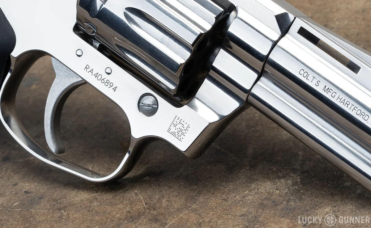 Colt has obviously paid a lot of attention to the aesthetics of their new revolvers. The King Cobra Target has a mirror-bright finish unlike anything you’ll find on production guns from the other big revolver makers. They’ve left a matte finish on the top to avoid glare. The engraving is sharp and clean.