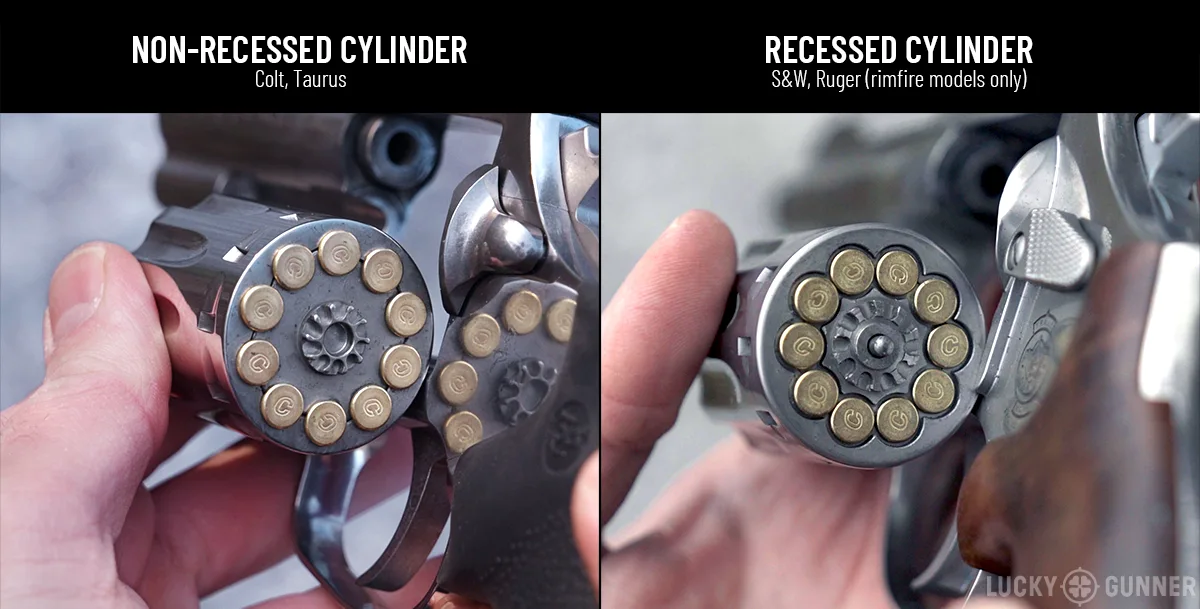 But, for .22s especially, those little recessed areas are a massive pain to clean. And when they get fouled up, the rounds don’t seat properly and you get light primer strikes. The Colt is much easier to keep clean and I didn’t have to clean it as often as the guns with recessed cylinders.