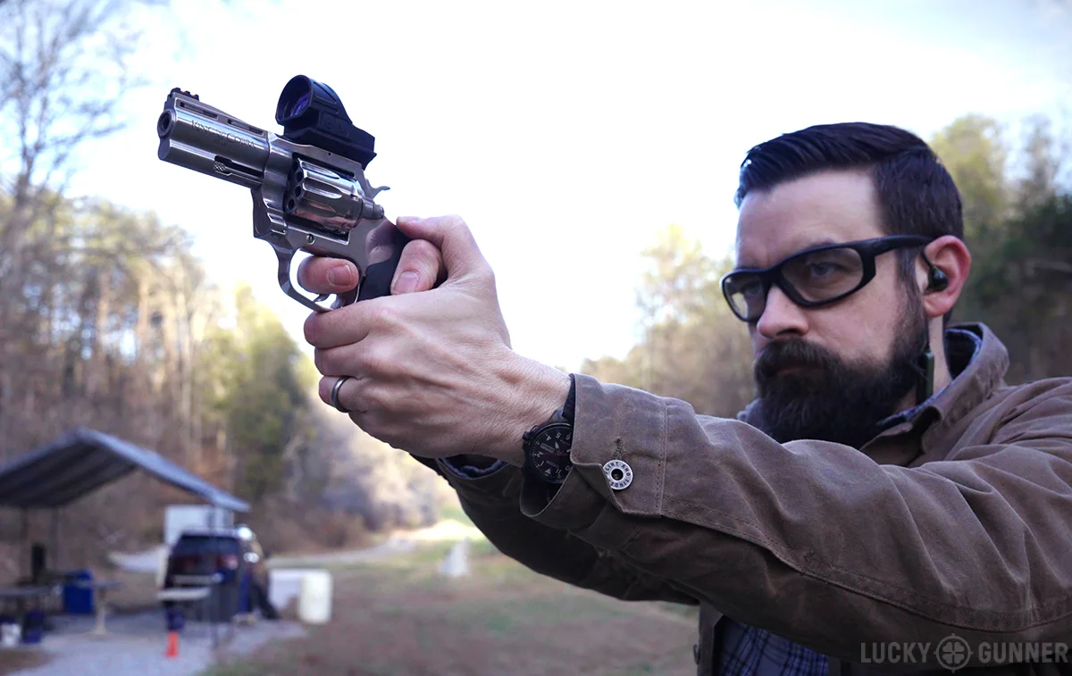 Somebody always reacts like I just kicked their puppy whenever I put an optic on a wheelgun. And that’s okay. I get it. They look funny and there are some other downsides. But I’m trying to find out what these guns are mechanically capable of and an optic is much better than iron sights at removing the human element from that equation.