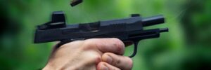 One of the reasons we flinch is that our brains just aren’t accustomed to recoil and muzzle blast. Rapid fire can exacerbate this problem, and the increased noise and pressure from multiple shots in quick succession can easily throw you off and cause a flinch response to start creeping in. This automatic response usually fades as you get more rounds down range and practice more frequently. If you can’t shake it after a time, try moving up to just a couple of feet from the berm and run few strings of rapid fire into the dirt. Don’t worry about aiming, just watch the slide cycle and brass eject. Look at the gun from different angles as it fires. With this exercise, you’re basically removing the pressure of firing accurately and instead, your focus is on “getting used to” the sensations associated with firing the gun.