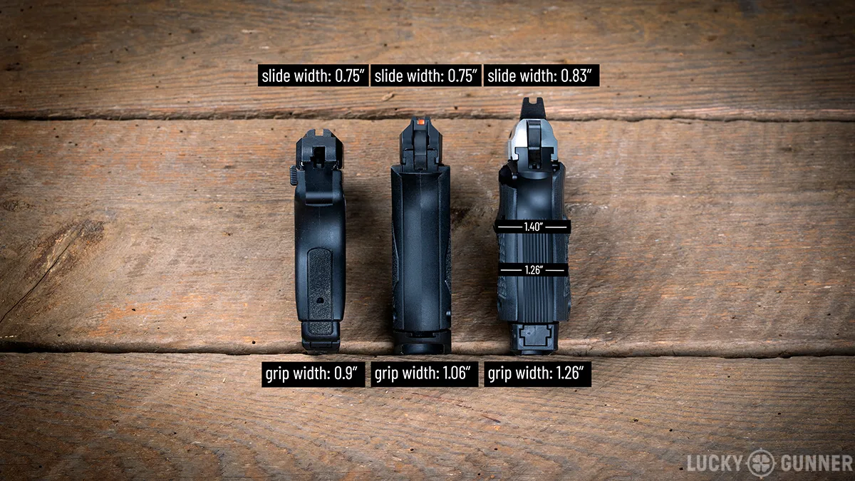 In terms of width, the Ruger is substantially slimmer. The Beretta and Taurus both have removable grip panels that add to their width.
