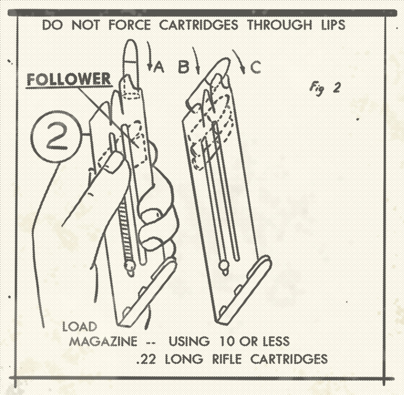 There’s a little quirk to loading the magazines. The manual cautions you to not force the rounds through the feed lips. Instead, you’re supposed to pull down the follower and insert the head of the cartridge first so it goes under the feed lips.