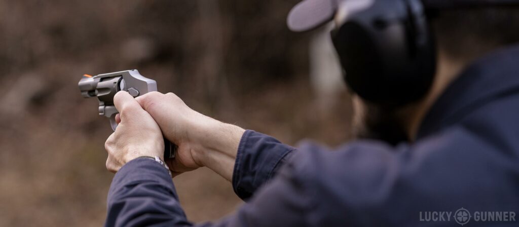 I’m going to demo that and hopefully that’ll clear up anything that didn’t make sense. In honor of our upcoming video on .32 caliber revolvers, I’m going to be using a Smith and Wesson Model 332 chambered in .32 H&R Magnum. Today, I’m actually using it with .32 Long ammo because that’s what I had in the ammo box.