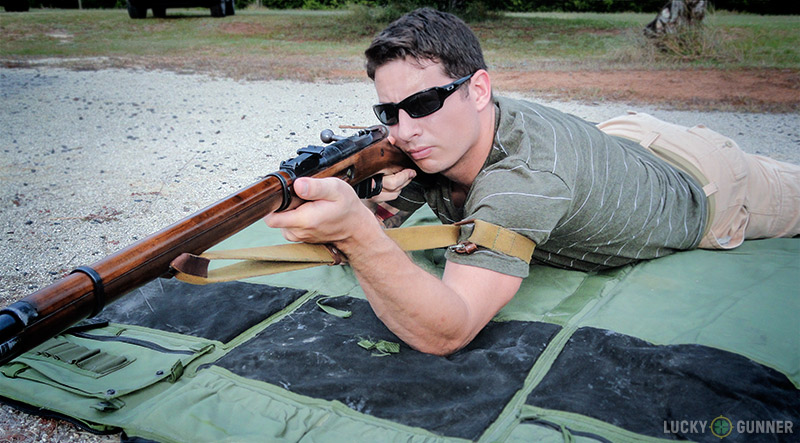 Even though it is not necessarily intended to be used as a shooting aid, the carry strap may be wrapped around the support arm to provide a small amount of stability. This technique is known as the “hasty sling.” Different shooters will likely experiences different levels of confidence in this technique, but in my experience the added stability is very slight due to the fact that most of the tension merely serves to pull the rifle sideways rather than deep into the shoulder.