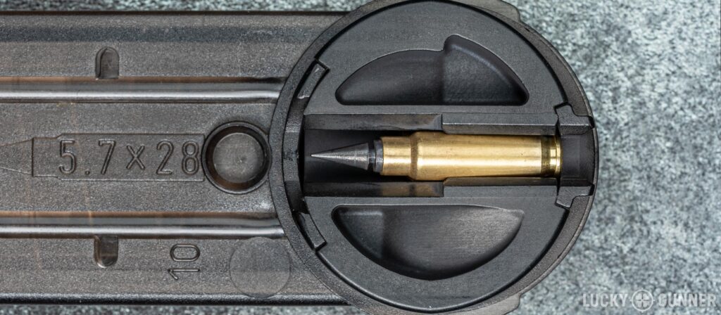 But if you take a second look at those accounts, they’re often comparing the performance of 5.7 with the P90 submachine gun to short-barreled 5.56 carbines. 5.7 was originally designed to replace 9mm, not rifle cartridges. Clearly, 5.56 is a better round, ballistically. That doesn’t necessarily mean 5.7 is useless.