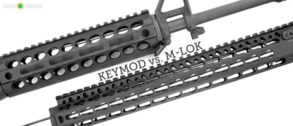 To alleviate this, there are low profile handguards that allow the user to attach small sections of rail only where they are needed. Not a bad solution, but what if we could eliminate the middle step and attach accessories directly to the handguard without the need for a picatinny adapter? The KeyMod and M-Lok systems do just that.