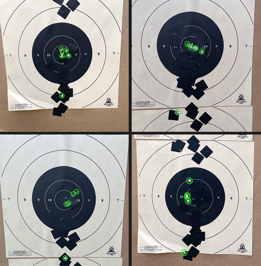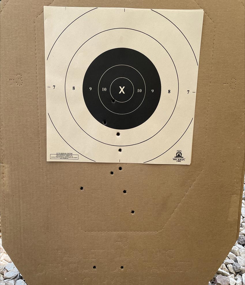 I shot several more groups and every time it was the same story. The first shot would be six or more inches low, and the rest would be grouped pretty close to the point of aim. I tried switching ammo. I tried a few rounds of HST, which I know this gun has grouped well with in the past. Same thing.