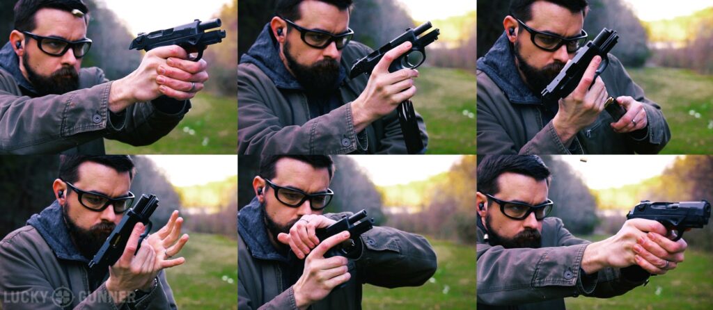 The need to reload a pistol rarely comes up in actual defensive shootings, especially if you’re not in law enforcement. It’s not a skill I would suggest you prioritize or spend a ton of dedicated practice time on unless you’re interested in competition. But, just like I said with the shotgun reload a few weeks ago, since you have to reload the gun when you’re at the range anyway, you might as well learn and practice a technique that can be used in a defensive context. You don’t necessarily need a lightning fast reload, but you should be able to do it smoothly and consistently without fumbling. So let’s take a look at some techniques.