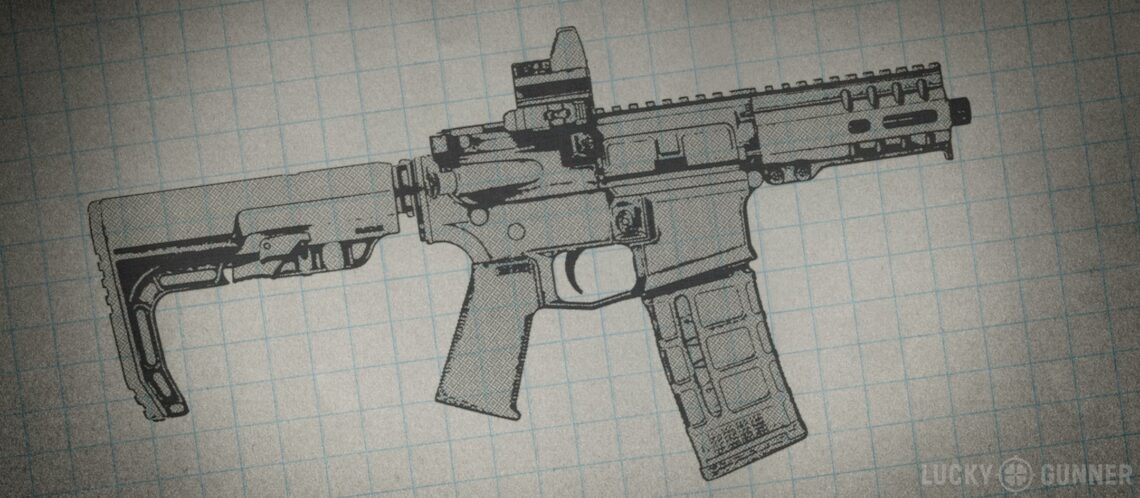 Now, let’s fast forward to about a decade ago. The black rifle market was booming and the gun companies were running out of ideas for AR variants. We started seeing something on the market that had previously been somewhat uncommon and that was AR-style pistols. These were essentially AR-15s with no shoulder stock. Without a stock, legally speaking, it’s not a rifle, it’s a pistol. Because it’s a pistol, there’s no restriction on minimum barrel length. So you can have an AR with a barrel under 16 inches and it’s completely legal — no extra NFA paperwork required. It’s a pistol.