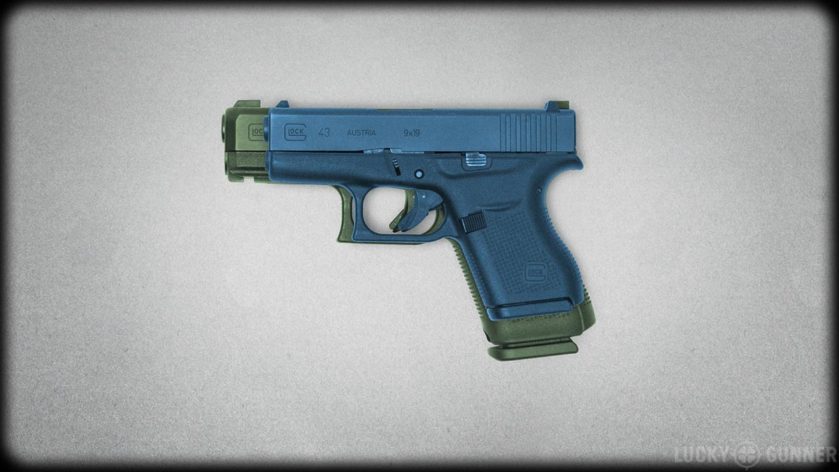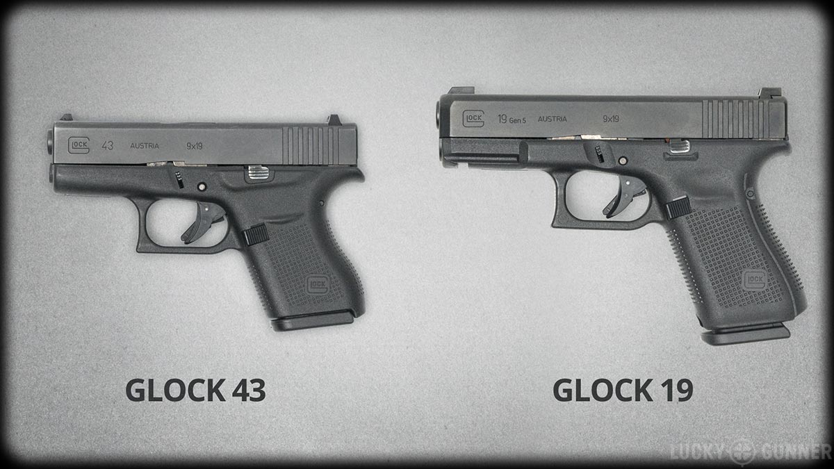 Here on the right we have the world’s most ubiquitous compact 9mm, the Glock 19. On the left is Glock’s single stack 9mm, the Glock 43. It’s not the smallest 9mm out there, but I think it’s among the smallest nines that are still reasonably shootable.