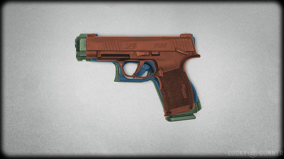 Even so, I should probably mention that, just like the Sig P320 series, the P365 has a serialized fire control unit. That means the part that legally counts as a firearm is inside the frame. So if you have a P365 XL, for about 40 or 50 bucks, you can pick up a standard P365 grip module. It takes about 30 seconds to swap the parts around and then you have the shorter grip with the longer XL slide. Of course, you also have to drop another 50 bucks for one of the smaller 10-round mags to go with it.