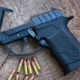 In January of 2018, Sig Sauer rescued us from this endless tedium with something that was actually a little bit different: the P365. It looks like a single stack nine. It’s the same size as a single stack nine. But, they somehow managed to cram ten rounds into this little clown car of a magazine. The typical single stack 9mm magazine holds 6 to 8 rounds, but this is not quite a single stack magazine. The top three or four rounds in the magazine are more or less stacked right on top of each other, but then the mag tapers outward and at the bottom, the rounds are staggered like a double-stack.