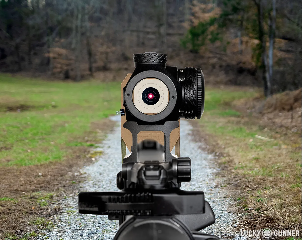With the dot sights, you just look through the glass at your target. Line up the dot with the center of the target, and that’s all there is to it.