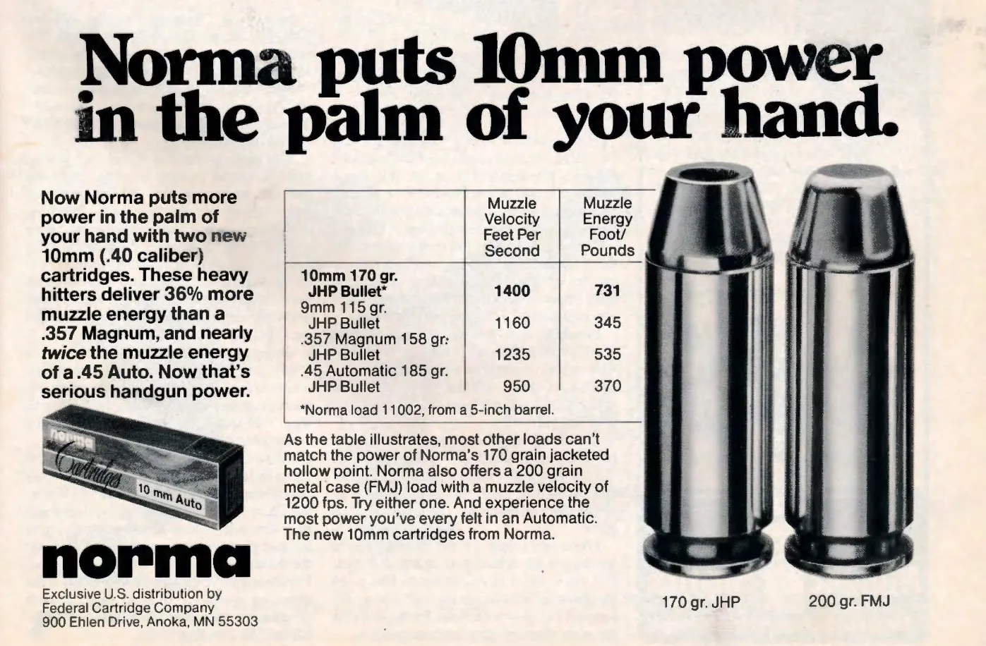 Despite protests from some within the Firearms Training Unit, Hall recommended that the FBI adopt 10mm Auto. Publicly, Hall argued that 9mm and .45 ACP were old cartridges with no further development potential, while 10mm was new with lots of room to evolve. Privately, he admitted he couldn’t go before Congress to request funding for a .45 pistol just after the US armed forces had switched from .45 to 9mm.