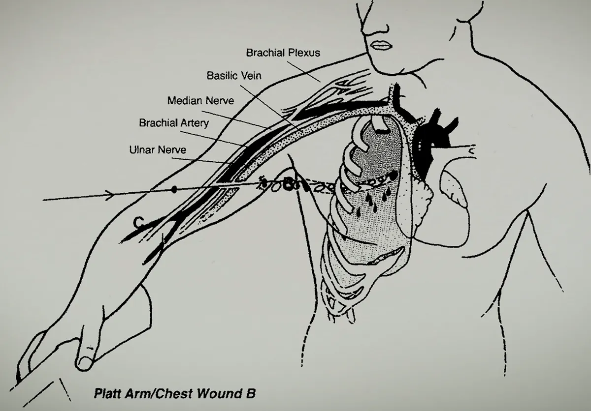Three of the eight agents in the Miami shootout were former SWAT members who still carried these 9mms. One of them, Jerry Dove, hit Michael Platt at the start of the gunfight. The bullet traveled through his arm and into the chest cavity, stopping an inch short of his heart. It was a serious wound but not enough to stop him immediately. Had the bullet penetrated deeper, Platt would not have gone on to kill and wound the other agents.